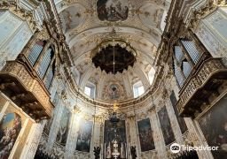 The Basilica of Santa Maria Maggiore in Bergamo was first constructed in 1137, with its construction continuing until the 15th century. The exterior of the church still features Romanesque architecture and a Greek cross. Upon entering the church and looking up, one can admire the frescoes on the dome painted by Giovanbattista. Inside, there is