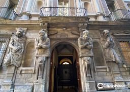 The mansion of the Omerini family boasts a rich history, with four colossal male statues standing on either side of the main entrance to the mansion.