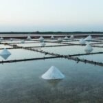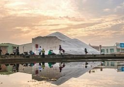 Approaching the seaside, one can see piles of white salt mounds and the strong smell of salt blowing in the wind