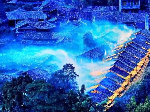 After visiting the museum, cross the Tian Deng Bridge and follow the gentle steps of the plank road up the mountain to visit the Sanzhe Waterfall in order. The Sanzhe Waterfall is a beautiful natural landscape in the village. The water originates from the Yu Cang Mountain Range, cascading down in three levels, and is caught by a blue pool, forming an integrated hanging waterfall. The second drop is particularly large, and looking down from the waterfall pavilion on the hillside, the falling water is particularly spectacular.