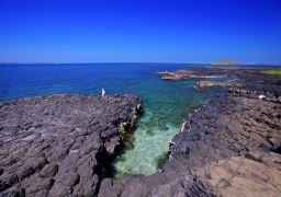 As the coast is columnar basalt and eroded by seawater, it forms a ditch of sea cave