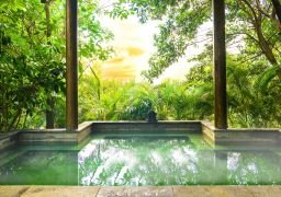 Lingshui Hilton DoubleTree Spa features 15 outdoor independent hot spring pools, scattered amidst the hills and surrounded by lush tropical gardens. Here, you can fully immerse yourself in nature, completely relax, and sink into the mountains and forests, enjoying the healing energy brought by the hot springs and freely indulging in a secret vacation paradise.