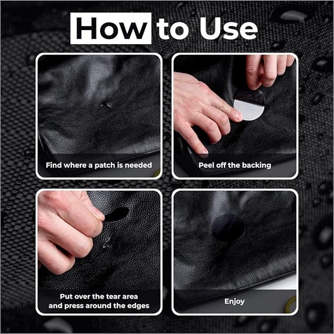 • HOW TO USE: clean the area on your down jacket or clothing around the hole, rip or tear that needs to be patched (if there are feathers sticking out, push them inside under the fabric), select the appropriate size and shape of the pre-cut patch, peel it off and stick to the area that needs to be fixed. You are all set! No sewing or ironing required