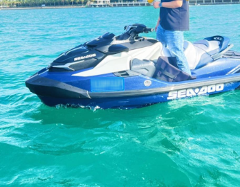Introducing the brand new Bombardier 300 model high-powered motorboat, known as the Rolls-Royce of the sea, for self-driving adventures. This motorboat can accommodate two adults and one child, making it perfect for a family of three.