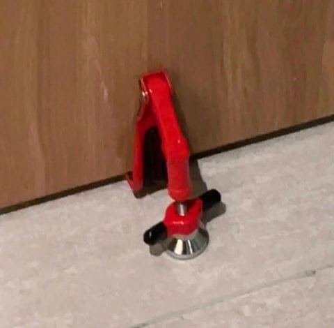 This lock really gives me peace of mind. It’s incredibly secure, impossible to push open, and very small. Operating it is also straightforward. The only downside is that it requires a gap between the door and the floor to fit in.