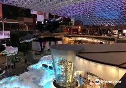At the atrium of MGM Cotai, LED screens adorn the walls, displaying a variety of scenic images from around the globe. The massive glass ceiling adds a touch of sophisticated design to the space.