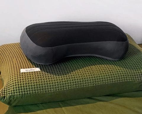Well, this inflatable pillow is definitely better than hotel pillows. It provides enough support, turning your head doesn’t make much noise, and it’s lightweight and small when folded up.