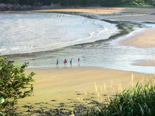 The Xiushan Beach Cluster is located in the eastern part of the scenic area, consisting of three beaches connected end-to-end, forming a crescent shape with a gentle slope. The sea currents in this area are gentle, with many reefs and abundant marine algae. Various fish, crabs, and shellfish, such as swimming crabs, copper basin fish, and tiger head fish, live and inhabit in the reefs and sea areas here. During the transition from summer to autumn, schools of tiger head fish and other fish species come to the beach and reefs to spawn. Tourists can catch them by hand and barbecue them for a delightful and endless pleasure.