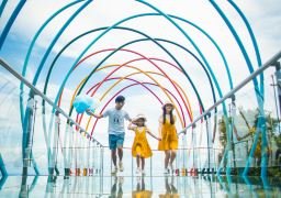 The full sea view glass skywalk is located at the peak of Yalong Bay Tropical Paradise Forest Park, with the highest point at an altitude of 450 meters. The glass skywalk, built along the mountain, is 400 meters long and made up of 130 tons of ultra-white imported laminated glass, including attractions such as the Sky Terrace, the Seven-Colored Sky Ladder, the Lotus Viewing Platform, the Rainbow Path, the Mountain Vow and Sea Oath, and the Heart-to-Heart. The skywalk is paved with large single transparent glass of 3M*3M, allowing you to look up at the high sky and light clouds, look down at the rainforest valley over a hundred meters deep, and overlook the panoramic view of Yalong Bay. While thrilling, you can also enjoy the joy of walking in the air.